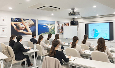 彩グループは、全国全体会議やセミナー・各種研修で店舗の好事例発表や講演など経営についての意見交換を頻繁に行い、集客や運営などのノウハウをはじめ、充実した研修システムもご用意しております。